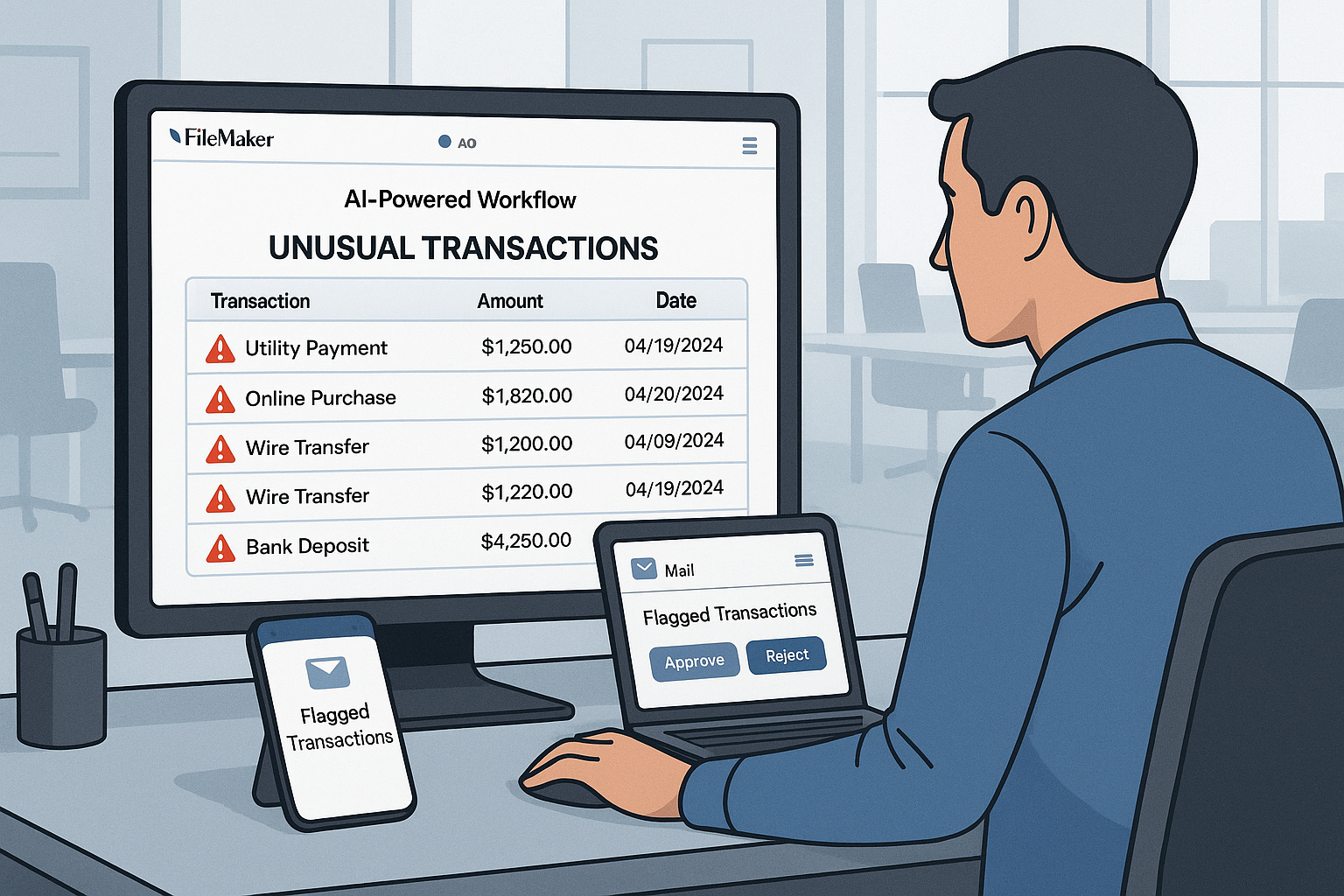 Example: An AI-powered FileMaker workflow flags unusual transactions for review, requiring a human administrator to approve or reject them before updating records.