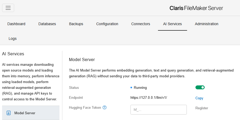 FileMaker Usage: AI Services enable organizations to host and manage AI models directly within their FileMaker Server environment for secure and private operations.