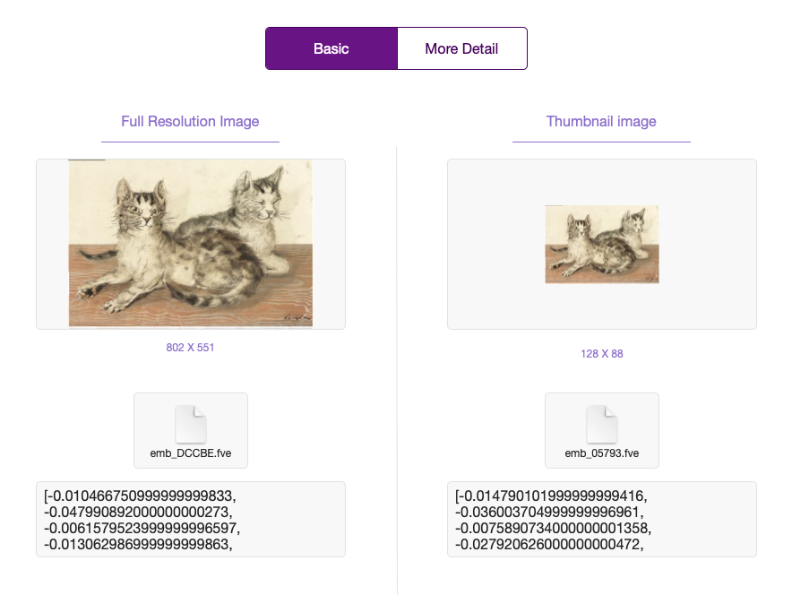 - Compare Embeddings: Examine the resulting embedding vectors. Even though the images are visually identical to the human eye, the vectors may differ slightly due to the change in resolution.